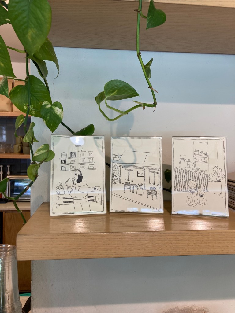 En 2023 dibujé algunas fotografías de mi cafetería favorita en la ciudad. Local Coffee es un lugar pequeño, muy cálido y con café que me regresa a la vida y me motiva a seguir con mi día. Les hice estos diseños de postales con mucho amor.